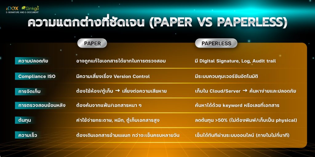 • ไม่ต้องซื้อกระดาษ/หมึกพิมพ์ → ลดค่าใช้จ่าย 30–50%